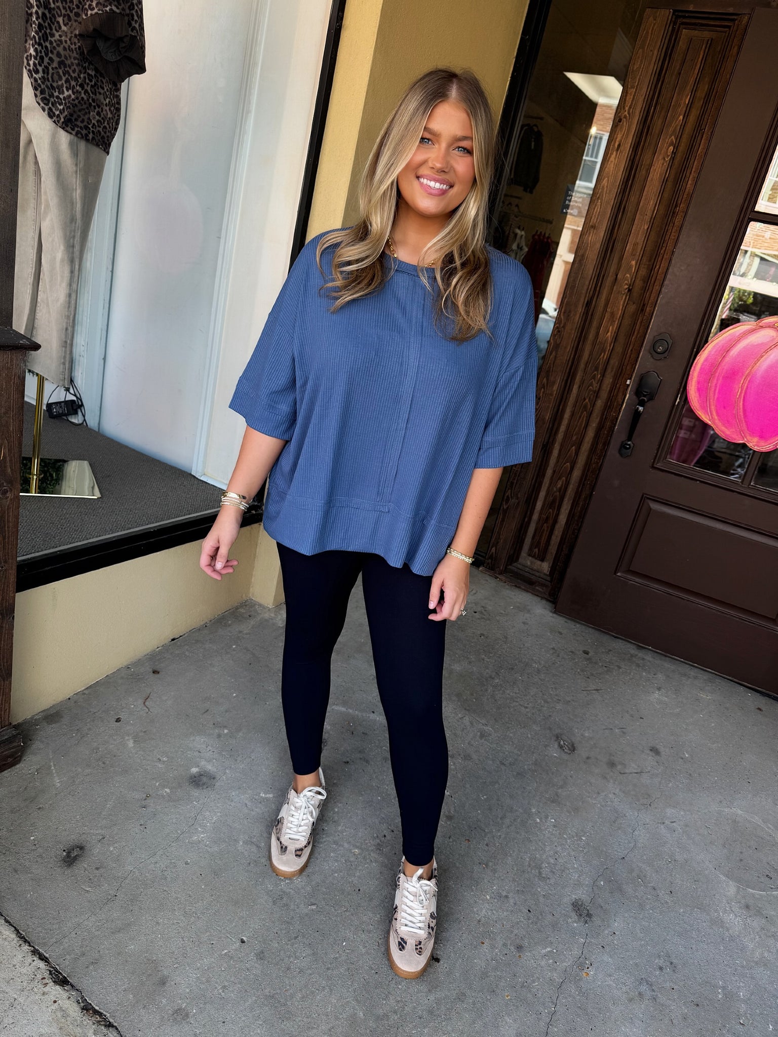 Introducing our Back to the Basics Tee in Navy. Made from a high-quality, Navy Basic Tee fabric, this tee is a must-have addition to your wardrobe. Its classic design and comfortable fit make it an essential for any casual outfit. Upgrade your basics with our timeless and versatile tee.